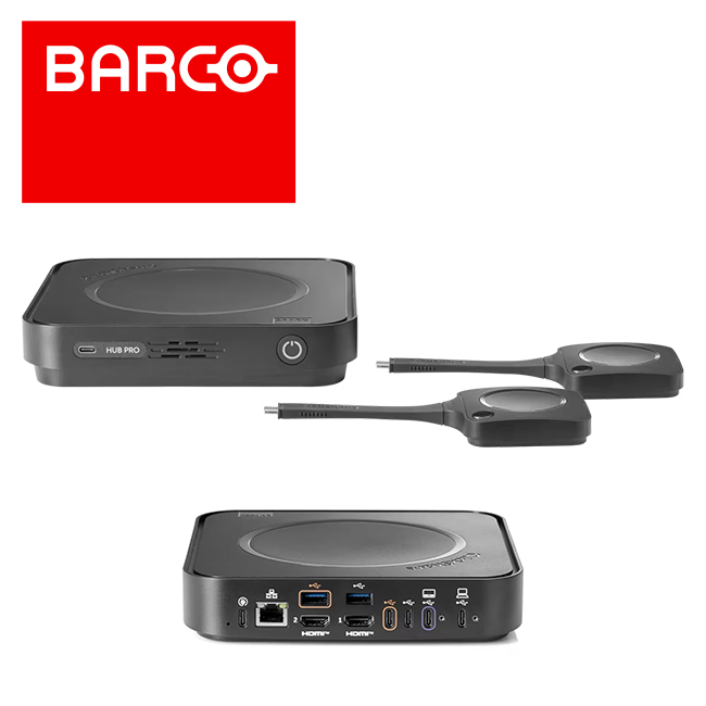 Das brandneue Barco ClickShare Hub Pro ist ein hochwertiges, modulares, kabelloses Videokonferenzsystem für hybride Meetings. Die Teilnehmer starten ihr Meeting mit einem einfachen Tippen auf das ClickShare Control Panel. Die Freigabe von 4K-Inhalten mit zwei ClickShare Buttons der nächsten Generation ist ebenfalls einfach. In Verbindung mit der Unterstützung von zwei Bildschirmen fördert der Hub das Engagement und die Zusammenarbeit.